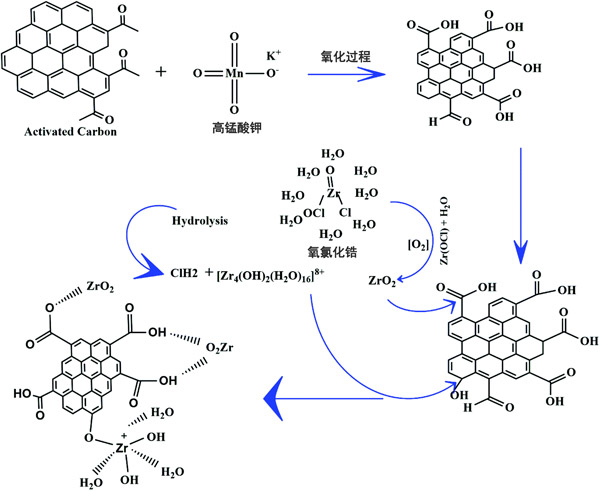 圖1:載鋯活性炭合成過程中可能發生的改性過程示意圖。