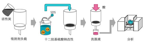 圖1:使用十二烷基硫酸鈉改性的活性炭進行鎘預濃縮的實驗程序。