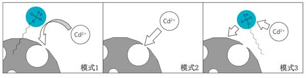 圖2:鎘離子被十二烷基硫酸鈉和活性炭吸引/吸收的反應機理。