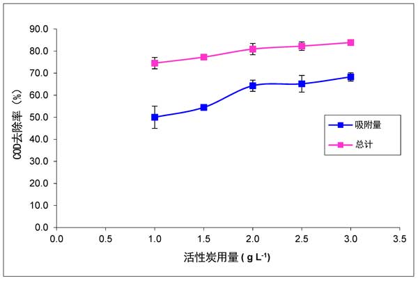 圖2:活性炭用量對COD去除的影響。