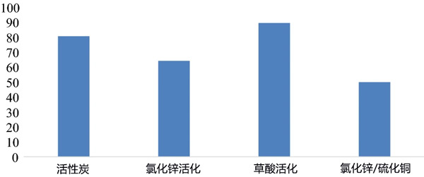 原材料用蒸餾水洗滌數次,然后干燥24小時,然后將原料通過電動研磨機獲得的粉末。將100g樣品與1L草酸(20%w/w)一起回流180分鐘,然后讓混合物在室溫下冷卻。將出售的部分通過過濾分離,以除去任何過量的草酸,將該固體與250mL/2M鹽酸一起加熱90分鐘。然后,對新混合物進行多次過濾并用蒸餾水沖洗以得到干凈的固體,以除去樣品中存在的任何水分,將固體在130℃的烘箱中放置30小時。最后,為保證樣品的均勻性,將干燥的固體研磨過篩,得到草酸活化的活性炭粉末。對含有100g原料和1L20%w/w氯化鋅酸性溶液的混合物以及100g原料和20%w/w氯化鋅酸性溶液和50g銅的混合物重復相同的程序。得到的氯化鋅活化的活性炭和氯化鋅/硫化銅活化的活性炭。總計三種活化方式制成的活性炭吸附劑。