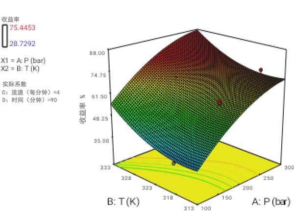 圖2:溫度和壓力對產量影響的3D圖形表面。