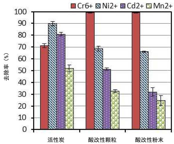 來自采礦活動(dòng)、工業(yè)和城市廢物以及垃圾填埋場滲濾液的重金屬對(duì)地下水和地表資源造成嚴(yán)重污染。重金屬對(duì)水的污染可能來自不同的來源。Cd2+,Cr6+,Mn2+,Ni2+被引入到水資源和環(huán)境中的主要來源是廢家用電池和充電電池、電鍍、制革工業(yè)、化肥、石化產(chǎn)品和煉油廠廢水。本文研究了使用酸改性和未改性活性炭吸附從含有Ni2+、Mn2+、Cr6+和Cd2+的季銨鹽水溶液中競爭去除金屬離子的方法。活性炭用硝酸氧化,呈顆粒狀和粉末狀,并測試其對(duì)金屬離子從水溶液中的競爭吸附。