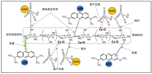 靜電相互作用:帶正電荷的亞甲藍與帶負電荷的活性炭表面相互作用,增強吸附作用。