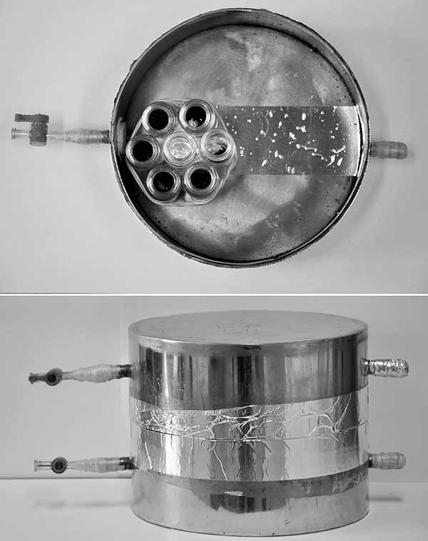將0.15g活性炭或生物炭稱入20ml透明頂空小瓶中。將三次重復(每次總共6個小瓶)放入容器中。容器由兩個不銹鋼圓柱形盒子構成,每個15厘米內徑和4厘米高(圖1)。將5mL純氯化苦液體注入20ml透明頂空小瓶中并放入容器中以產生飽和蒸氣相。將小瓶放入容器后,用鋁帶密封容器。然后將容器置于溫度穩(wěn)定在30℃的培養(yǎng)箱中。孵育3,6,9,12和24小時后,從培養(yǎng)箱中取出容器。打開容器并在通風櫥中通風約30分鐘。然后使用與已經描述的相同的方法分析活性炭炭或生物炭。