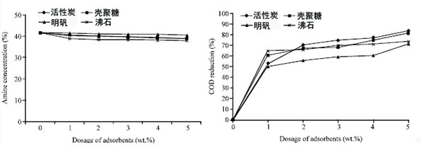 該單乙醇胺廢水含有許多類型的分子和離子。因此,某些分子和離子基于其特性被吸附到這些吸附劑表面上。活性炭具有疏水表面,有利于空氣中的有機(jī)物。同時(shí)沸石是親水性吸附劑。吸附劑的這些特性有助于降低COD水平。從結(jié)果可以看出,與活性炭和沸石相比,活性炭是降低COD水平的效果好的吸附劑。