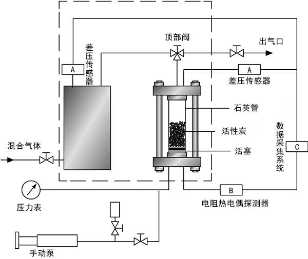 實驗材料使用氫氣(99.99%)和二氧化碳(99.99%)。在實驗室中制備兩種不同比例的氣體混合物作為原料氣。通過兩步分離過程觀察不同比例的混合氣體和活性炭分離性能的分離性能差異。通過氣相色譜儀分析進(jìn)料氣體和平衡氣體的組成。在實驗之前,將活性炭樣品在100℃的真空干燥箱中干燥至恒重。