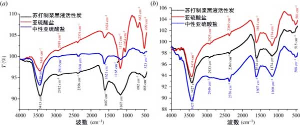 FTIR光譜和SEM在表面功能基團并根據該制漿工藝的研究基于活性炭的形態學的變化在圖2示出。關于FT-IR光譜(圖3a,b),很明顯活性炭的表面具有強帶,其分配為酚木質素,羧酸或吸附水的OH伸縮。因為蘇打制漿導致從原料中更高的二氧化硅去除,并且因此黑液中的二氧化硅含量更高。發現不同官能團為特征的活性炭表面已準備好進行吸附過程。