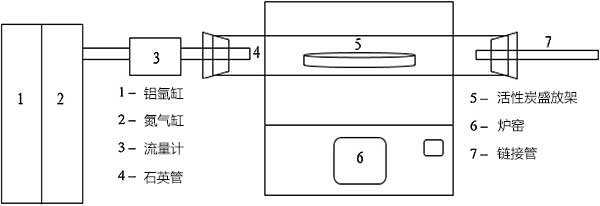 將三種棕櫚廢物預(yù)處理的樣品碳化并通過一步法在700℃下在氬氣流下使用管式爐以10℃/min的加熱速率活化。當(dāng)達(dá)到700℃的設(shè)定溫度時(shí),以5L/min的流速代替氮?dú)獾臍鍤饬鳎曰罨?小時(shí)的保持時(shí)間。圖2顯示了一步物理活化的實(shí)驗(yàn)裝置的示意圖。然后使樣品冷卻并儲(chǔ)存在密閉容器中以避免孔吸附大氣氣體。