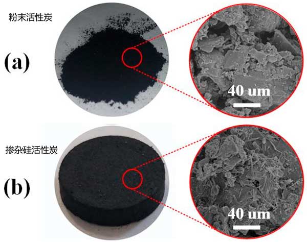 制備活性炭載硅復合材料的步驟如下:將粘合劑和粉末狀活性炭充分混合以增加接觸面積。在該階段期間還將溶解的硅酸鹽添加到混合物中。通過手動液壓在15MPa的壓力下進行樣品的壓縮模塑。進行熱處理以固化粘合劑,這促進了模塑并增加了強度。它在管式爐中進行。將樣品加熱直至溫度在氮氣中達到200℃達60分鐘。在通過真空干燥除去雜質后,我們獲得了柱狀模塑復合吸附劑。當然要成為合格的產品還需要優化過程,比例添加材料等。