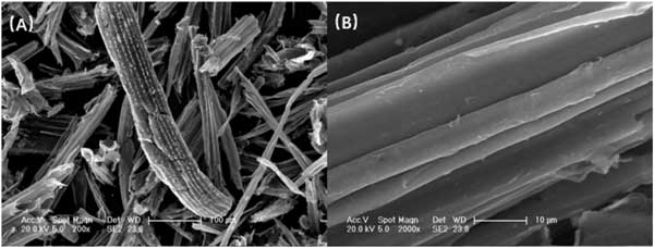 原材料用去離子水沖洗并干燥。然后在破碎機中破碎。重復破碎后,將破碎的原材料堆通過50和100目篩。將篩過的原材料粉末在氮氣氣氛下在不同溫度(300.0 °C至1000.0 °C)下煅燒。加熱速度為5.0 ℃ min -1,目標溫度維持 180min。溫度上升后;然后將樣品自然冷卻至室溫。將烘干的活性炭浸入10%的鹽酸中12 h,用水洗滌3次,并在100.0 °C下干燥6 h制成。研發(fā)的活性炭與商業(yè)活性炭相比,具有更高的表面積和孔體積。圖1 顯示了活性炭的掃描電子顯微照片。由于高溫煅燒,活性炭具有不規(guī)則的棒狀結(jié)構(gòu),在其表面上具有皺紋,這提供了較大的表面積并增加了活性炭表面的吸附位置。