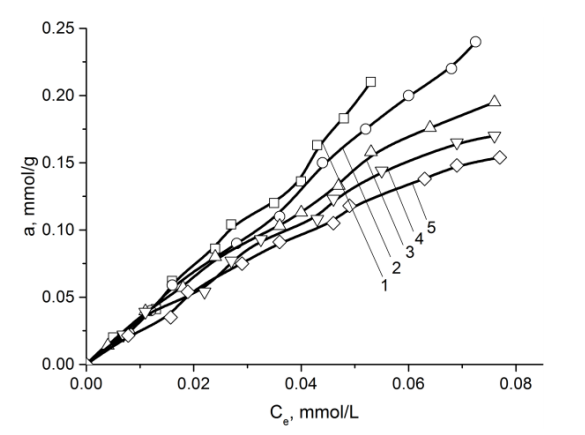 即使在相對較低的平衡濃度下,活性炭果殼1上水溶液中鍶離子的吸附等溫線也有兩個拐點。隨著溫度升高,吸附值降低,表明吸附過程是放熱的。鍶離子在活性炭1和2上的標準吸附熱值不同。活性炭1的Q 0值高于樣品2的Q 0值,分別等于8.6 kJ / mol和6.8 kJ / mol。活性炭1上鍶離子的吸附標準熵變的絕對值很小,這與鍶離子在吸附劑中的高遷移率有關,因此,吸附可能是非定位的。