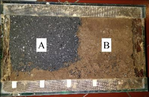 這項研究是在小型土壤上進行的,然后將其注入含有重金屬的礦山廢料中。使用27.5厘米x10厘米x20厘米的水族箱制作土壤模型,每5厘米要釘一次。該釘塞提供了空間,并使重金屬廢物更容易吸收到土壤中。每天注入多達5毫升的重金屬廢物,直到其積累多達200毫升。然后將土壤模型分為兩個區域:區域A和區域B。區域A的表層土壤被施加了活性炭,而區域B被留下(圖2和圖3)。每天都用蒸餾水稀釋微型土壤,以保持土壤濕度。
