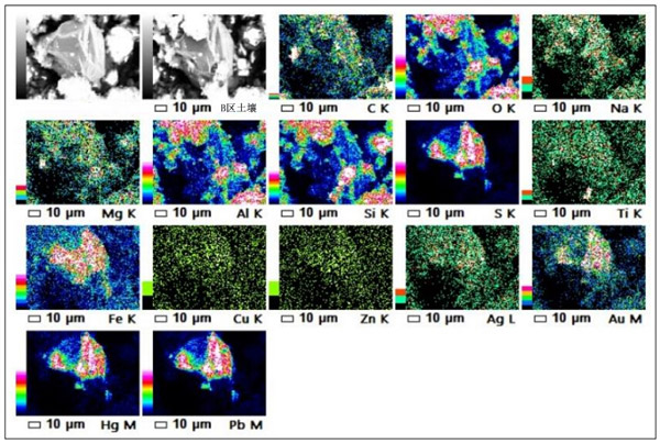 圖6:B區土壤樣品(被重金屬廢物污染)的元素圖。